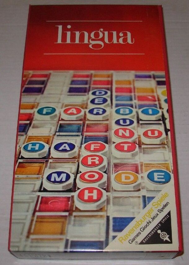 Very good variant of Scrabble. Scoring is easier and allows for tactics in trying to outscore your opponent. The game can be forced to an end by reaching the bonus end-fields. Lingua was also published in the Ravensburger Casino Series. The game is played on a 17x17 board, the squares being one of four colours or white. A "Start" square is near one corner...
