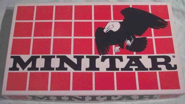 While Minitar has an ostensible political theme (the 1968 US presidential election), in fact it is a completely abstract game. Each player has a deck of cards depicting the 50 states and Washington DC, plus a wild card. On a turn a player draws a card and places it on the 8x8 board. If it is the first card played in one of the rows in the player's half of...