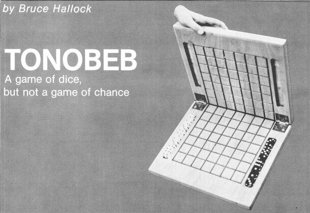 A dice game described in the premier issue of Gameplay Magazine (February 1983) played on a 7 square by 14 square board. The dice are not rolled, but instead moved around the board as pieces. Each player starts with six dice. one of each pip-strength from 1 to 6 in opposite corners of the board. Pieces move horizontally or vertically the number of spaces...