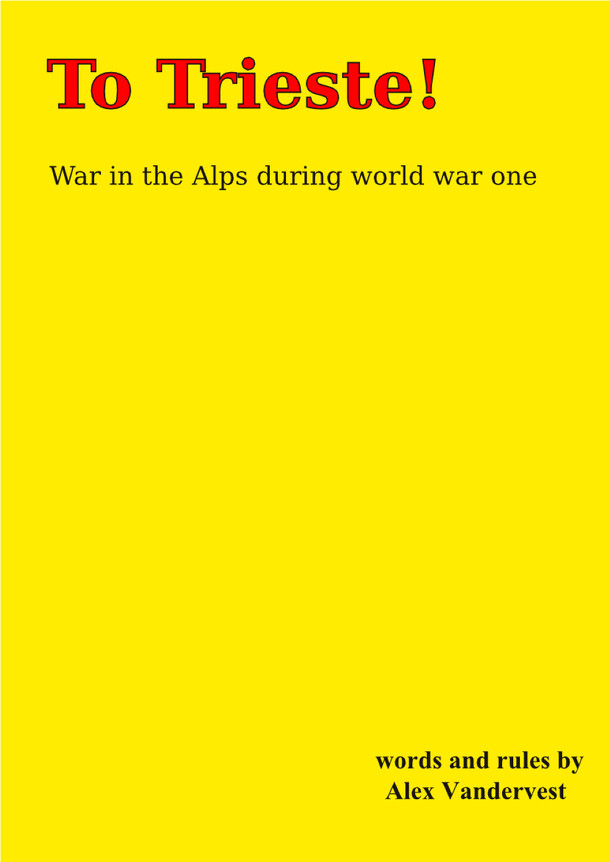 A postcard sized wargame set in the Italian campaign of world war one. In 1915 Italy entered the first world war to fight Austria- Hungry over control of Dalmatia. They thought that it would be easy to push to Trieste. They learned quickly what every other country was learning, that war in the 20th century was slow and horrible. To Trieste! is set in one...