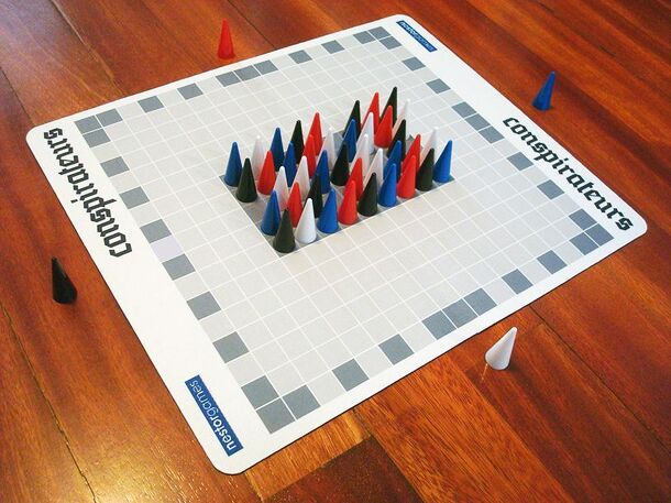 Conspirateurs is a traditional board game from France. It was probably invented sometime before 1800, but after the French Revolution (1789) as it seems to be inspired by the rivalling factions of that time. The game resembles Halma and Chinese Checkers - players hop over friendly or enemy pieces to get to their destinations. The players attempt to bring...
