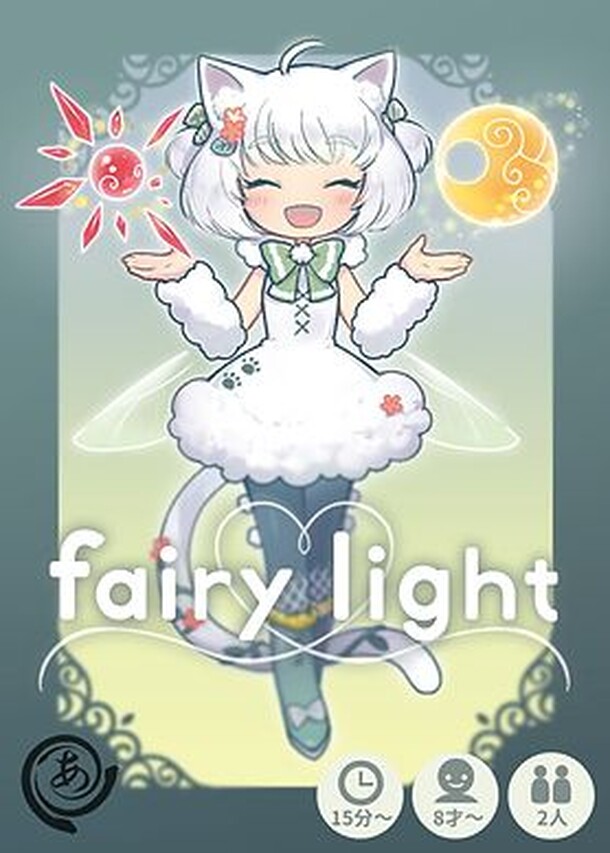fairy light (フェアリーライト) is a two player card game from Japan. Players build up a 5x5 grid of cards and try score the most hearts from the cat fairy コットン (Cotton). Each player is the Sun or the Moon, and they shine down on the forest where Cotton lives. The Sun brings warmth and growth to the forest. The Moon brings safety and guidance at night to the forest...