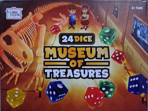 In Museum of Treasures, 2 or 3 players compete to be the first to set up all 5 different types of exhibits (dinosaurs, space, transport, Egypt and art) in their museum. To achieve this they have to, on their turn, roll their 6 dice and place them on of the available exhibit-cards which displays the same value. The first player to put all the necessary dice...
