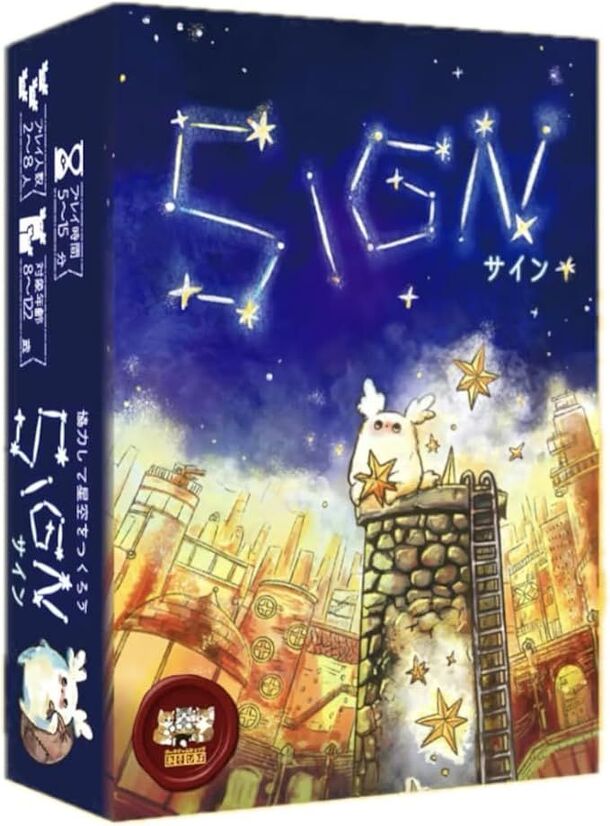 SIGN is a cooperative game that everyone creates a starry sky. Other than the answers will follow the title of the "Star Cards" with various words. The star cards connect to each other with an irregular chip so you can tell the responder about which word is closer to the subject. Answers will guess the correct answers while watching the starry skies made...