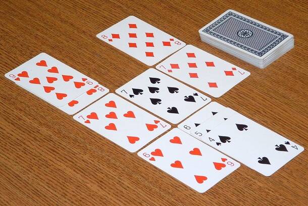 Sevens is a traditional card game, wherein players try to be the first to void their hands of cards. The four 7s are the only cards that can be played initially; after the 7 in a suit is played, the 6 & 8 can be played, and so on until the A (low) and K (high). This game is not to be confused with Shichi Narabe, which like this game is also sometimes...