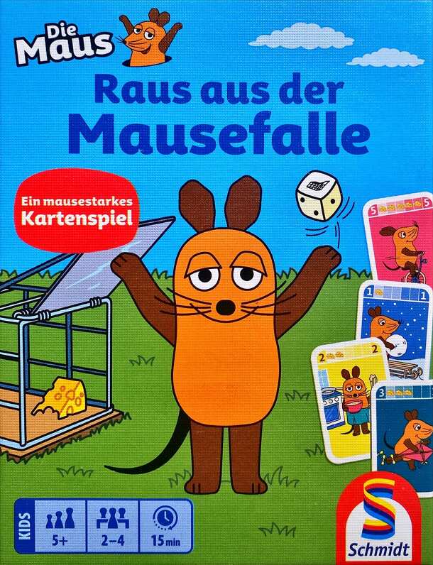 Raus aus der Mausefalle is a simple card placement game for children that features the main character of a popular German children's TV program, "Die Sendung mit der Maus" (The Program with the Mouse), which first aired in 1971. Players start with five cards each and in each turn draw another card before it is required to play at least a single colored...