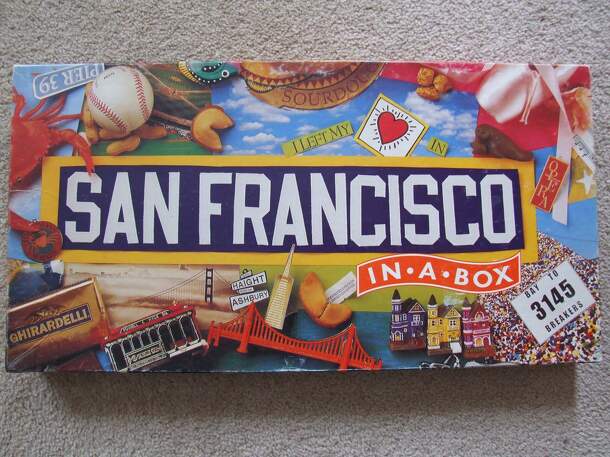 A Monopoly clone from Late For The Sky; this version is based in San Francisco, California. It has spaces such as Ghiradelli Square, Alcatraz, Cow Palace, Golden Gate Bridge, Nob Hill, Chinatown, and Cable Cars. The tokens include a bridge, heart, Trans America Building, sailboat, trolley car, and a fortune cookie. Cards include local events and staples of...