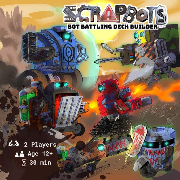 Scrapbots is a bot battling deck builder, drawing inspiration from card battlers (Magic, Pokemon, Yugioh) and combining it with deck building mechanisms (Star Realms, Ascension, Nightfall). Scrapbots takes place in a post-apocalyptic robot junkyard arena where you, as a Scrapjack, will compete for glory. Build up your bots, power em up with gadgets, and...