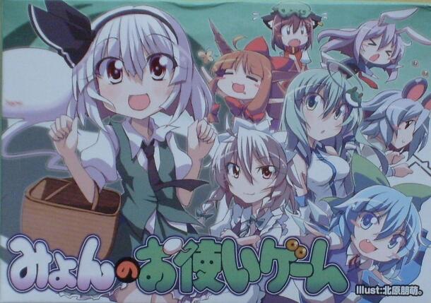User summary: Myon's Errand Game (みょんのお使いゲーム) is a "Great Dalmuti" type card game featuring characters of Shrine Maiden fame. The card deck consists of cards numbered 1–15 and a special power. Each player gets 7 cards. The first player may play 1 or more cards (several cards of the same number or a straight), and the players who follow must play as many or...