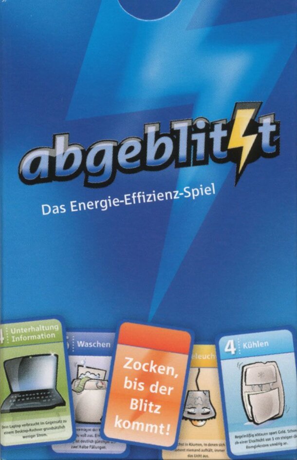 User Summary: A card game where players try to collect most valuable suggestions to save energy in different categories. There are five categories: Kühlen (refrigerating), Waschen (washing), Unterhaltung/Information (entertainment/information electronics), Heizen (heating) and Beleuchtung (light). For each category there are six suggestion/hint cards...