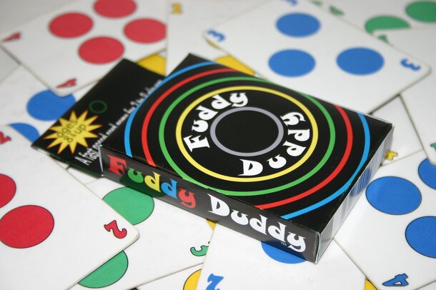 Choices to make. Chances to take. In this fast moving fun card game each player needs to be open to all possibilities. Be the first to collect 1,2,3,4 in one color and you've got a Fuddy and 20 points. Beware of dud numbers which count against your score unless you think you can collect them all and score a 40 point Fuddy Duddy! The first player to 100...