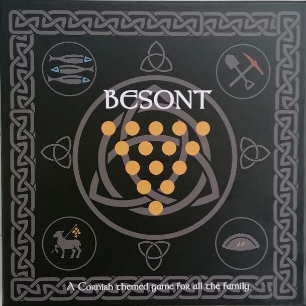 Besont is a two player placement game based on the nim principle where players place generic pieces ('gold coins') on the board. Taking turns players lay 1 - 5 coins along any straight line, they don't even have to be connected. The winner is the one who lays the last coin on the board, the 15th coin. It's not about making lines, it's about setting traps....