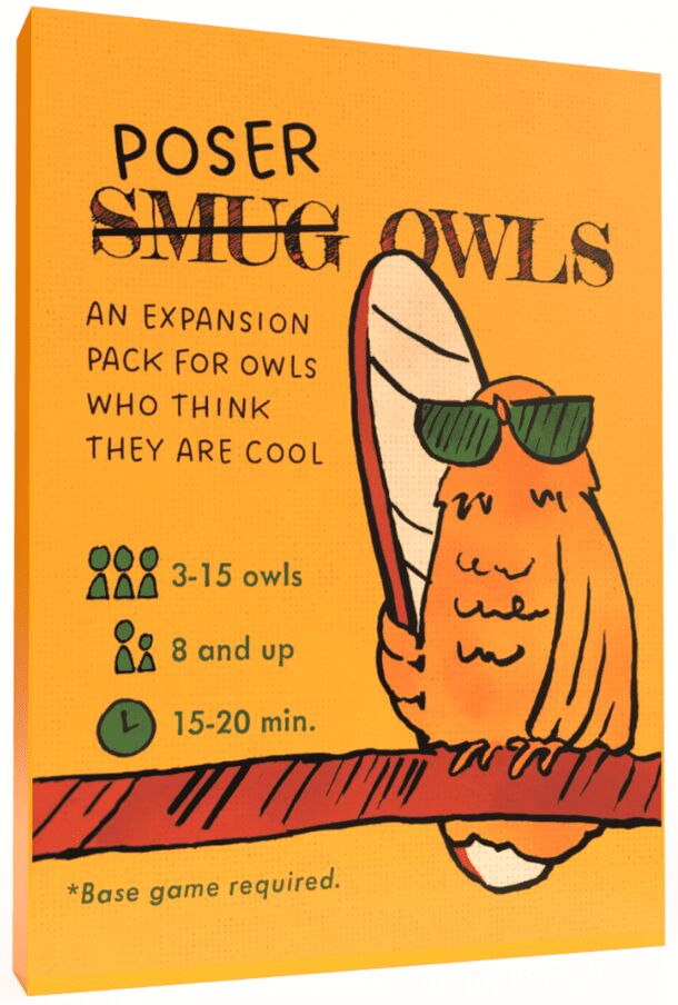 In Smug Owls, race to craft answers to never-before-seen riddles created by a magic deck. Your answer can be anything—funny, punny, clever, profound, nonsensical, you name it. Slap your hand on the table once you’re ready. When only one player is left, they become the Smug Owl, who listens to all the answers and rewards their favorite. —description from...