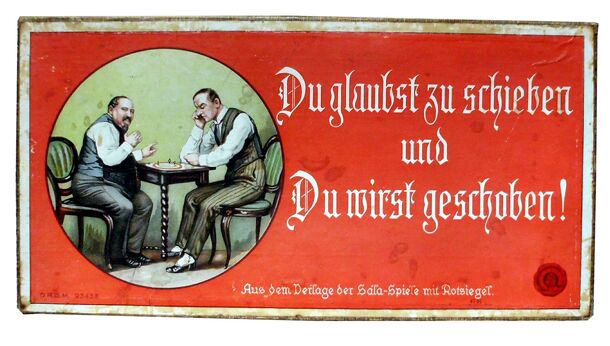 The players must get their meeple from space "Start" on the outher ring to space 100 in the center of the game board. The movement is determined by a die. On a space with an arrow the meeples advance to the next ring inward or have to return one ring outward. If a meeple gets on an occupied space, the other meeple must return to the lowest numbered space...