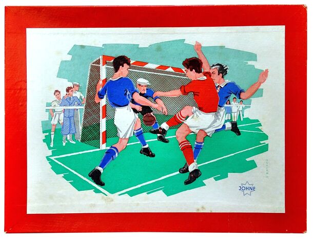 The players play two halfs of 45 minutes. The game starts at space 50. The beginning player keeps the ball, till it gets on a space of the opposite color. Movement of the ball is determined by a die. Some spaces got special rules which correspond to the actual soccer rules. If a player gets the ball into the opponents goal, play resumes at space 50. The...