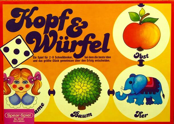 Players move around the track to the center of the board by forming the longest words possible. To start the game, the first player rolls the die from the Start circle and moves to their first circle. They must then roll again and all players must try to form a word in that category, using the first letter indicated by the dice roll according to the table...
