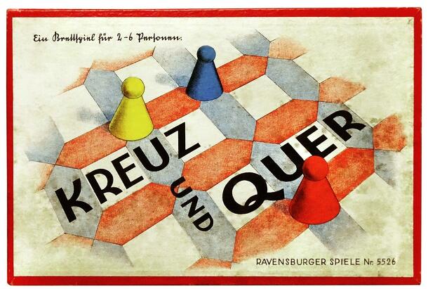 The players place their meeples on the starting spaces of their color (or colors). The goal of the game is to reach the starting spaces across the board. Friendly players move in opposite directions, while the opponents move sideways. Movement is one space straight ahead. Opponent meeples may be thrown out and then have to start anew. Friendly meeples may...