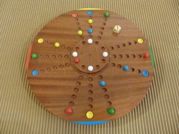 This game of French origin derives its name from the French names of the wind directions West-North-East (Ouest-Nord-Est) and is played on a circular board showing four arms, like the vanes of a windmill. Each such arm consists of three paths of seven cases, leading up to a eighth case (one per path) which is located on a mounted, turnable disc in the...