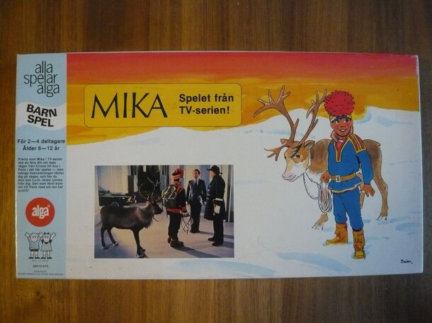 The game is based on the TV-series Mika, a Swedish/Lappish TV-series. The goal is for each player to be the first to transport yourself and one reindeer from Kiruna to Paris. With Mika-cards you can use different vehicles to move - cars, trucks, train, boat and barges. If you land on a red point you draw a red event card (mostly negative events), and on...
