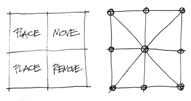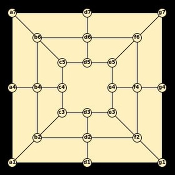 Twelve Men's Morris is a traditional board game similar to Nine Men's Morris. It was most popular during the Middle Ages when it was played in courts across Europe. It is played on a board with 24 nodes joined by lines; each player has twelve pieces. The game proceeds in three phases: Players alternately place one piece on a node in each move. If a player...