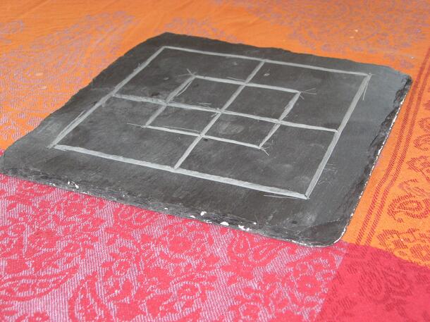 This ancient game is probably a direct ancestor of the better known Nine Men's Morris as well as Tic-Tac-Toe. It is played on a board of three rows and three columns. Players have three pieces each and take turns first placing then moving their pieces. The goal is to form a straight or diagonal line of three. There are two forms of the game: In the simple...
