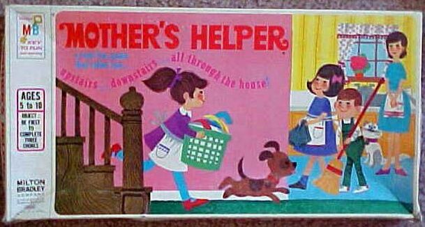 Act as a stay at home mom trying to clean the house. Each player moves through their own house (a play mat) trying to clean. The first player with a clean house wins. The trouble is that there is a child in each house controlled by the game. The child moves through the house playing with toys and making a mess. A child with no toys will help clean up but...