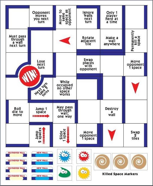 From Tom Jolly's website: The rules are simple; Put the board together as a 3x3 grid in anyway you like, as long as the 'WIN' tile is in the center of the board. Each player takes a playing piece and starts anywhere on any of the 4 edges of the board (just off the edge). You can move one space per turn. When you land on a space, you must perform the...