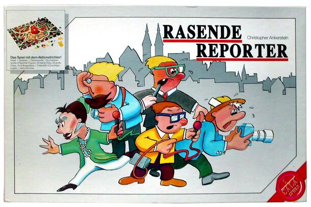 This game involves luck, bluff, skill and fast reaction. A lot of dice rolling is involved. Movement is determined by a number die. The players represent reporters, who have to get a theme (on red event spaces)and a buyer (on green buyer spaces). If a player gets a theme he has to create a Headline, while moving his meeple to the buyer space. On arrival at...