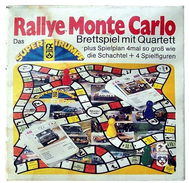 The players have to get from their starting point (Berlin, Madrid, London or Rom) to Monte Carlo. The first player to arrive in Monte Carlo wins the game. Movement ist determined by cards (F.X. Schmidt "Super Mini Rallye-Autos Trumpfquartett). Each player gets 5 Cards. At his turn the player reads the data on his first card, indicated on the space his...
