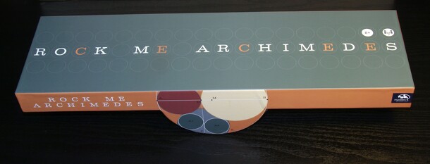 Rock Me Archimedes is a two player abstract game requiring both strategy and dexterity. The game is named after the ancient Greek mathematician, famous for describing the principle of the lever. The game consists of: a wooden board affixed to a rounded base, forming a teeter-totter assembly; 14 white marbles and 14 black marbles; and a specially numbered...