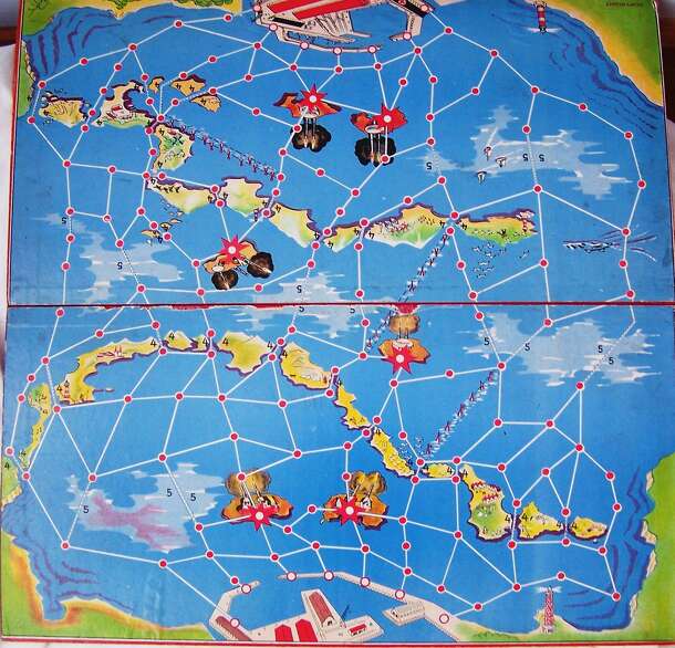 Each player takes a fleet (3 Battleships, 3 Cruisers and 8 Destroyers). Each player also takes 3 mines and 3 buoys. The fleets are placed in the harbors or capitals (not on the Jetty dots used for "moving out"). Movement is based on the roll of 2 dice. Units may be moved in any combination adding up to the total on the dice (for example a roll of 12 means...