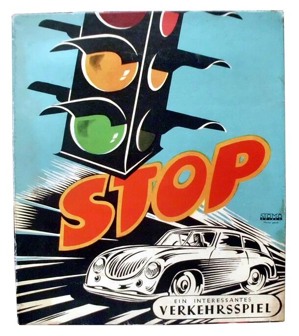 The players start with 175,- gamemoney and have to get from their starting point to the roundabout and a crossing on the other side of the board and back to their starting point, while minding the traffic rules. The first to achive this, gets a bonus of 50,-. Movement is determined by a die and the traffic lights at the center of the board. While playing...