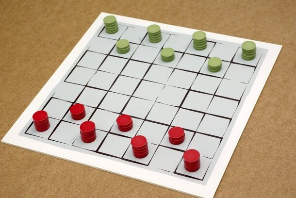 Each player has 9 infantry units (Gruppe), 3 tanks (Panzer), 3 Anti-tank guns (PAK) and 3 grenade launchers (Werfer), wich are set up on opposite sides of the game board on the corresponding spaces. Movement is figure per turn. The pieces have different movement capabilities and shooting ranges. Some spaces cause terrain modifications. A piece eliminates...