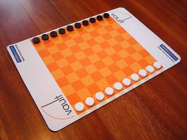 INTRODUCTION Vault is an abstract game in which each player tries to reach the opponent’s back rank. Vault is named after pole vaulting, which is a track and field event in which a person uses a long, flexible pole as an aid to jump over a bar. Vault is a derivative of Onager, by the same designer and uses a variation of its jumping mechanism (also present...