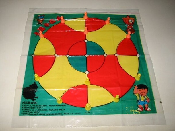 西瓜棋 (xī guā qí́), or Watermelon Game, has been described as a traditional folk game from Hangzhou for children. The set I have was purchased from a toy shop in Shanghai. Xi Gua Qi is played on a board that vaguely resembles a watermelon. It is a game of abstract strategy and the object is to capture the opponent's pieces by immobilization. Each player...