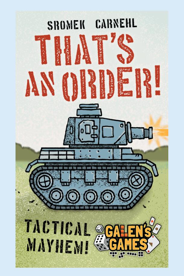 Command your mint-tin sized army on the battlefield and lead them to victory! That's an Order is a mini programming game of tactics, timing, and bluffing for 1 to 2 players. It's designed by Jonathan Carnehl and Ryan Sromek with art by Jonathan Carnehl. Set up the battlefield using a variety of terrain. Then, each player chooses their first three commands...