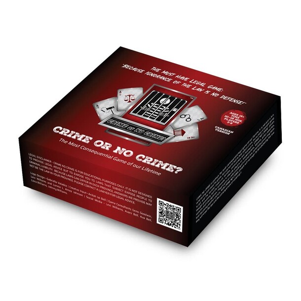 Created by a family of lawyers to educate people on criminal law, CRIME NO CRIME consists of 250 real-life scenarios that cover misdemeanors, felonies, police searches, seizures, and interrogations. The game is played with a facilitator and teams of up to four players on each side. Players earn points for identifying whether a crime has been committed and...