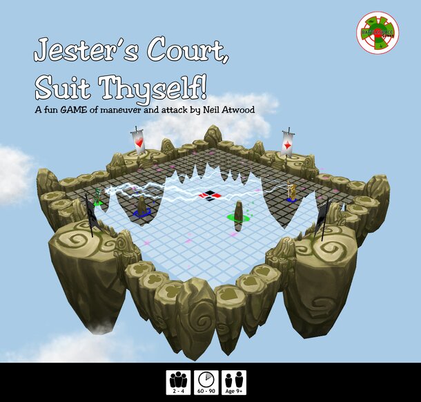 Jester’s Court, Suit Thyself! is a 2 to 4 player game for ages 9 and up. It has unique movement and competitive mechanics with subtle degrees of luck and strategy. Using cards, players maneuver their Mage on a grid and attack other players to weaken their avatars and eventually cause them to lose some of the suits they’ve collected. Blocking stones may...