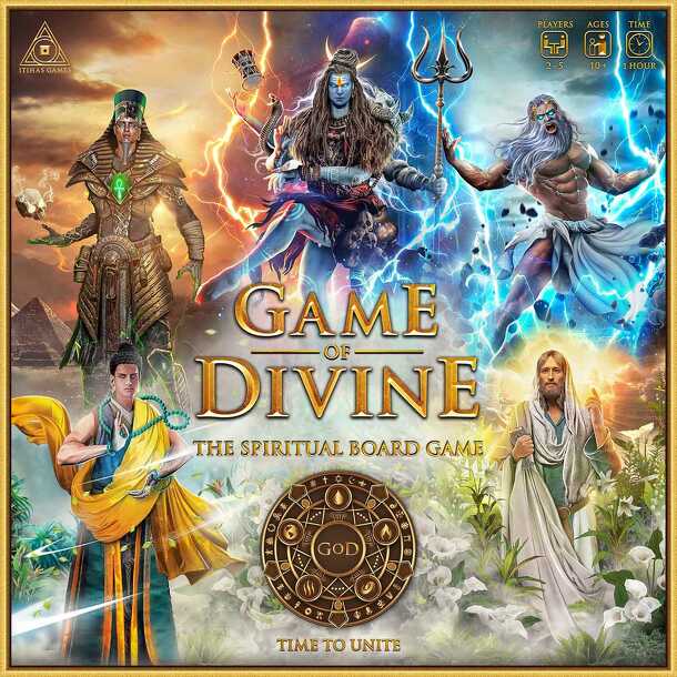 Game of Divine is a competitive 2–5 player board game where seekers race to unlock all 108 chakras and attain unity with the Divine. Navigate across territories, build shrines in sacred abodes, awaken powerful deities and harness spirit forces to alter fate. Use your Karma Score — determined by rolling Good Deeds and Bad Deeds dice — to move across the...