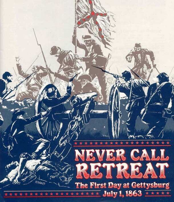 Never Call Retreat - The First Day at Gettysburg, July 1,1863. This game re-creates the first day's action between the Northern forces of the Army of the Potomac and the Southern forces of the Army of Northern Virginia during their classic three day confrontation at Gettysburg. Published in The Wargamer Magazine issue 25. Boxed Edition Component List: 1...