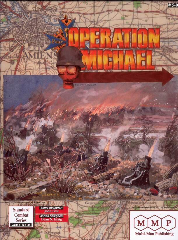 Sub-titled: 'Ludendorff's Last Chance' & Part of the Standard Combat Series #9, this game covers the March 21, 1918 offensive by the Germans in order to regain the initiative on the Western Front before the might of the U.S. forces will be felt. The components consist of the following: a Full COLOR paper Mapsheet; 420-Full COLOR cardboard counters in 2...