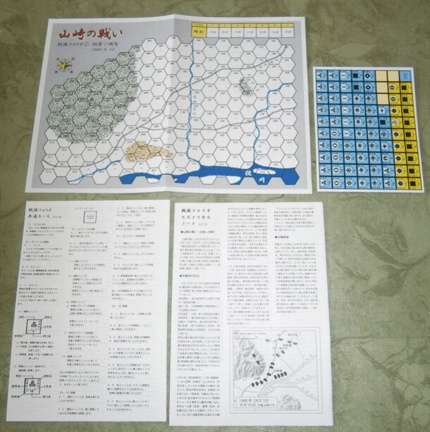 The Battle of Yamazaki is a Japanese doujin (fan-made) game produced by Ludens Faber and is game 1 of his Sengoku Folio series. The game simulates the battle between the Hideyoshi and Akechi. The game is a typical wargame, with movement and attack values, zones of control, a CRT for combat results, and a turn track. The game includes a map, rules...