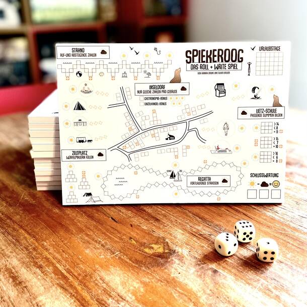 Thirty days of vacation on the beautiful island of Spiekeroog lie ahead of you! What are you going to do? Sunbathing on the beach, shopping in the village or visiting one of the countless sights of the North Sea island. The choice is yours. All you need is a game sheet, a pencil and three dice and your vacation can begin! SPIEKEROOG: The Roll + Write Game...