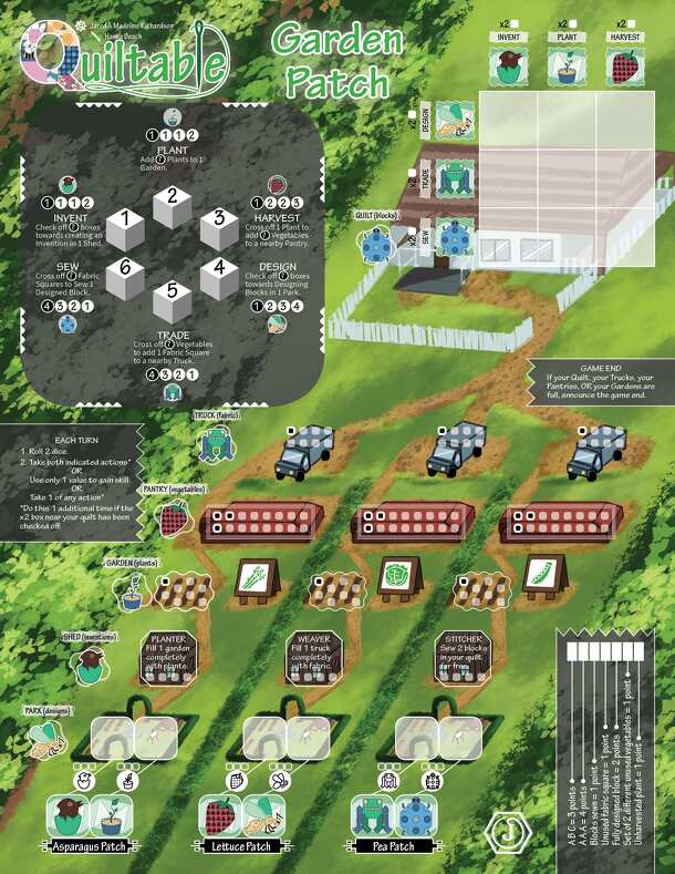 Quiltable: Garden Patch is a printable quilting game from the designers of Quiltable: Paper Quilts and Quiltable: The Card Game. Hearing about all your newfound gardening experience, a rich uncle on your father’s mother’s cousin’s sister’s side decided to retire and entrust you with the family farm. You started small with only a few garden patches and...