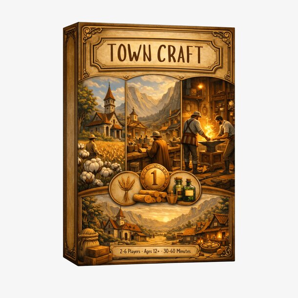 Town Craft is a card-drafting, deck-building, resource-collecting game in which players gather materials, manage their hands, and build their towns one structure pair at a time. At the beginning of each turn, players collect resources and use action cards to strengthen their plans, create new opportunities, and guide the growth of their settlement. Each...