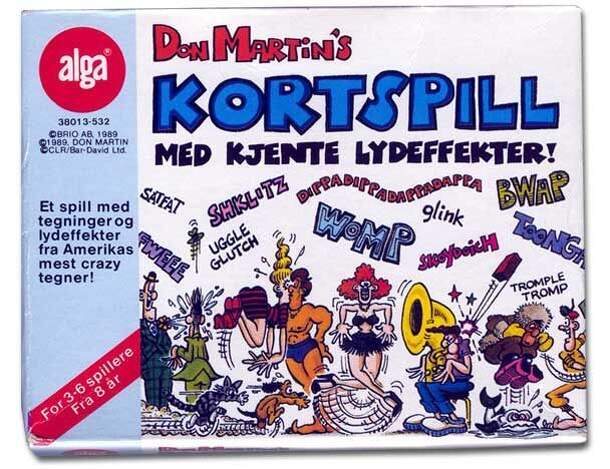 Don Martin's Kartenspiel is an excellently funny card game with an own special deck which contains 82 cards: 64 colored cards in 8 different texts and in 4 different colors plus 18 black & white action cards. The complete box includes also a couple of spare cards, some measurement cards that can be used to measure the size of your ear, and a c-cassette...