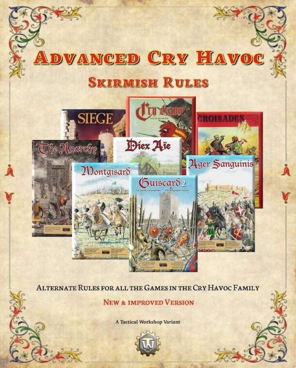 Advanced Cry Havoc system includes the rules for Skirmish battles (Siege Operations will be dealt with in another opus), the necessary markers and Player aid Charts. It overhauls the rules for the Cry Havoc series of games. Ownership of at least one of those published games is necessary to use these rules. The latest new and improved version of the CRY...