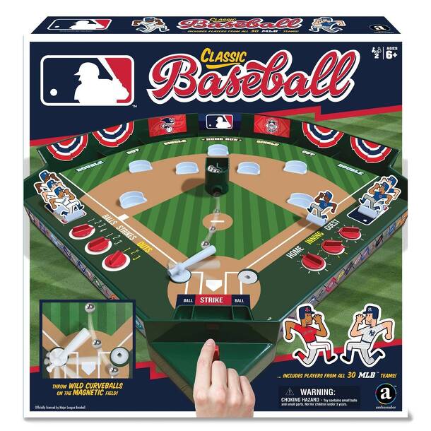 A family action, light-weight baseball game Spring-loaded switches activate a throwing of a ball bearing baseball piece and a similar mechanism swings the bat (which can be positioned for a righty or lefty at-bat). But watch out, a magnet in the pitching lane might make the pitch curve, and the strength of the pitcher's pull on his switch can mean for a...