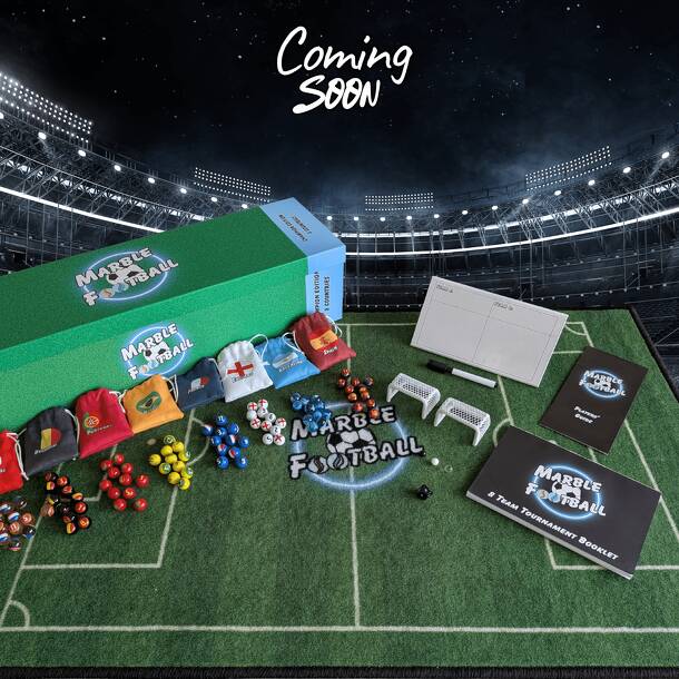 Marble Football is a fast-paced tabletop sports game where players take turns moving their team of marbles around a football pitch, outmaneuvering opponents, and setting up strategic shots to score goals. Every move matters; positioning, timing, and reading your opponent creates a game of tactics, tension, and dramatic moments. The game blends dexterity...