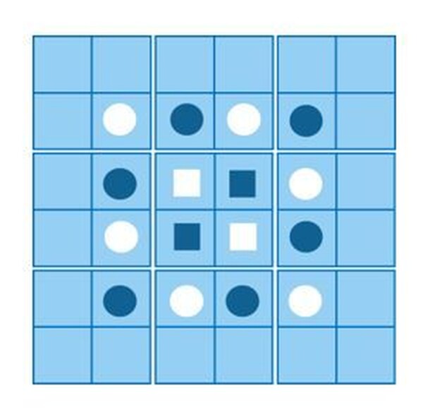 Skift is an abstract strategy for two players, ages 8 and up. Average playing time is 10 to 15 minutes. The object of the game is to eliminate your opponent’s pieces by shifting your own pieces and the board itself. The first player to cause their opponent to lose all of their kings or all of their pawns wins the game. The game board consists of 9 square...